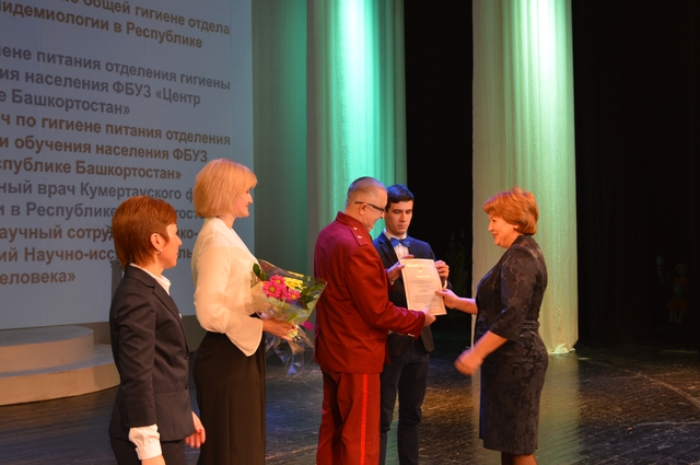 В рамках мероприятия состоялось награждение должностных лиц, специалистов и ветеранов государственной санитарно-эпидемиологической службы Республики Башкортостан ведомственными наградами Роспотребнадзора, почетными грамотами Республики Башкортостан, почетными грамотами и благодарностями Правительства Республики Башкортостан, Госсобрания – Курултая Республики Башкортостан, Министерства здравоохранения Республики Башкортостан, Совета городского округа город Уфа Республики Башкортостан, Администрации городского округа город Уфа Республики Башкортостан, Администрации муниципального района Нуримановский район Республики Башкортостан, Администрации муниципального района Уфимский район Республики Башкортостан, Администрации муниципального района Благовещенский район Республики Башкортостан, Администрации муниципального района Иглинский район Республики Башкортостан, Управления образования Администрации городского округа город Уфа Республики Башкортостан, Управления по опеке и попечительству Администрации городского округа город Уфа Республики Башкортостан, Управления по физической культуре и спорту Администрации городского округа город Уфа Республики Башкортостан, Министерства молодежной политики и спорта Республики Башкортостан, Комитета по делам молодежи Администрации городского округа город Уфа Республики Башкортостан, Республиканской организации Башкортостана Профсоюза работников здравоохранения РФ и др.